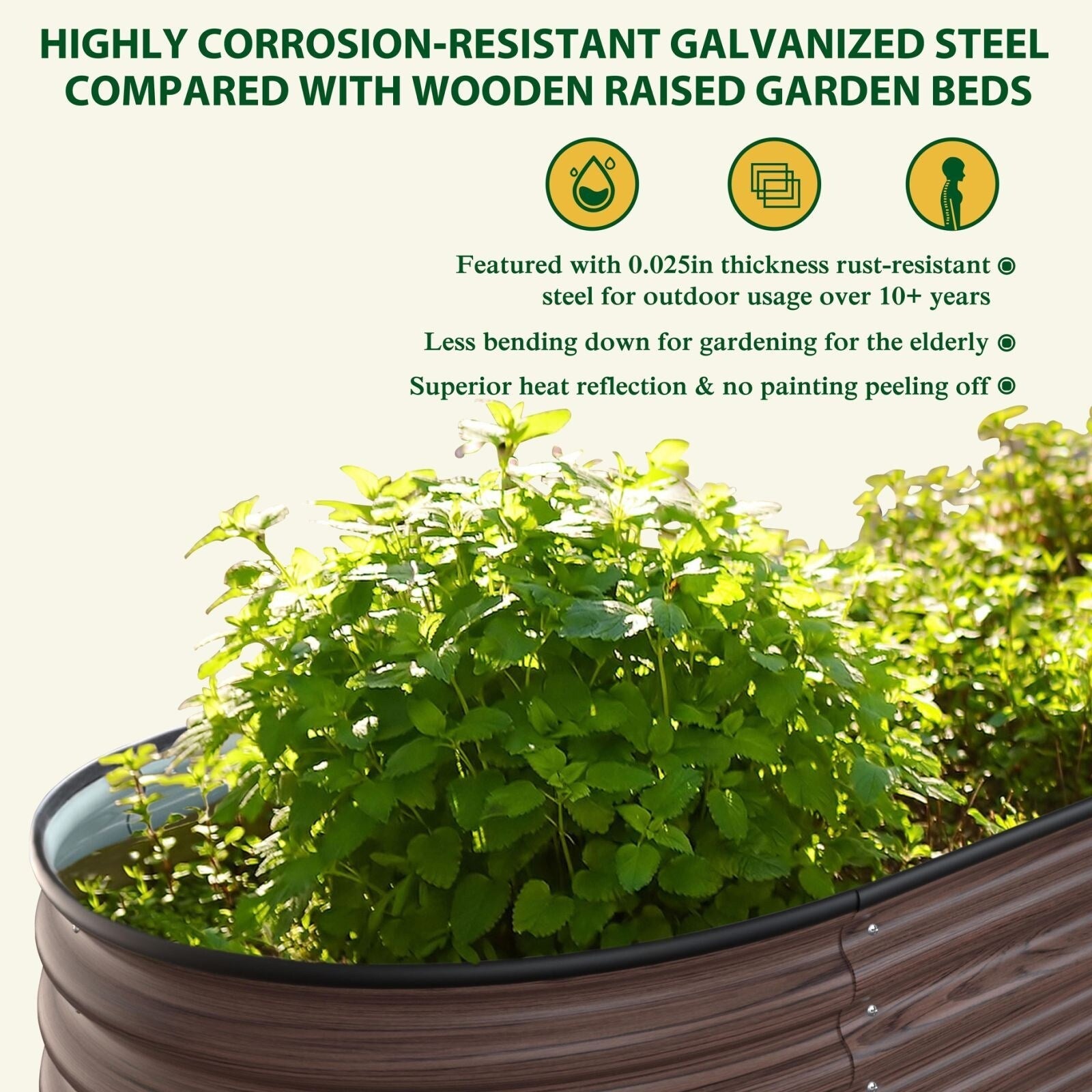 - Durable et facile d'entretien : L'acier galvanisé de 0,025 po d'épaisseur utilisé dans nos plates-bandes surélevées pour potagers nécessite un entretien minimal. La réflexion thermique supérieure et l'absence d'écaillage de la peinture vous garantissent une excellente qualité de jardinage.