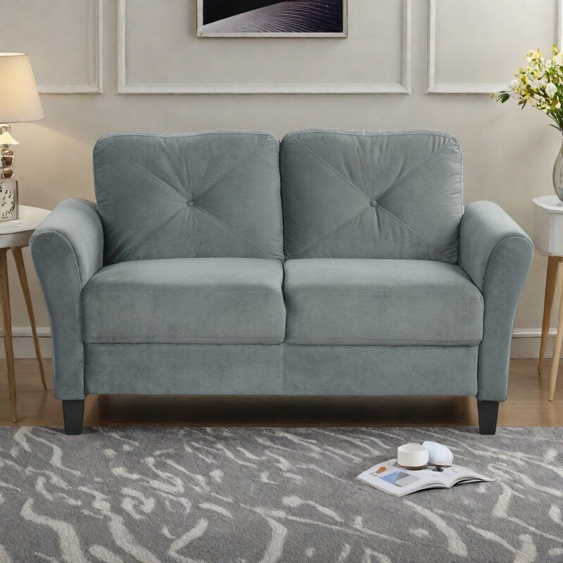 Velvet 2-Seater Sectional Sofa with Detachable Cushions