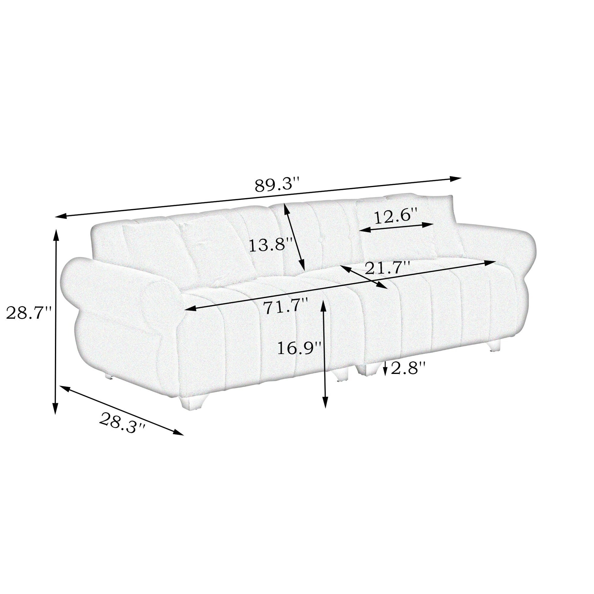 - This 89-inch flannelette sofa combines art deco-inspired channel tufting, stylish metal feet, and a modern silhouette, making it a standout piece in any living room, bedroom, or office.