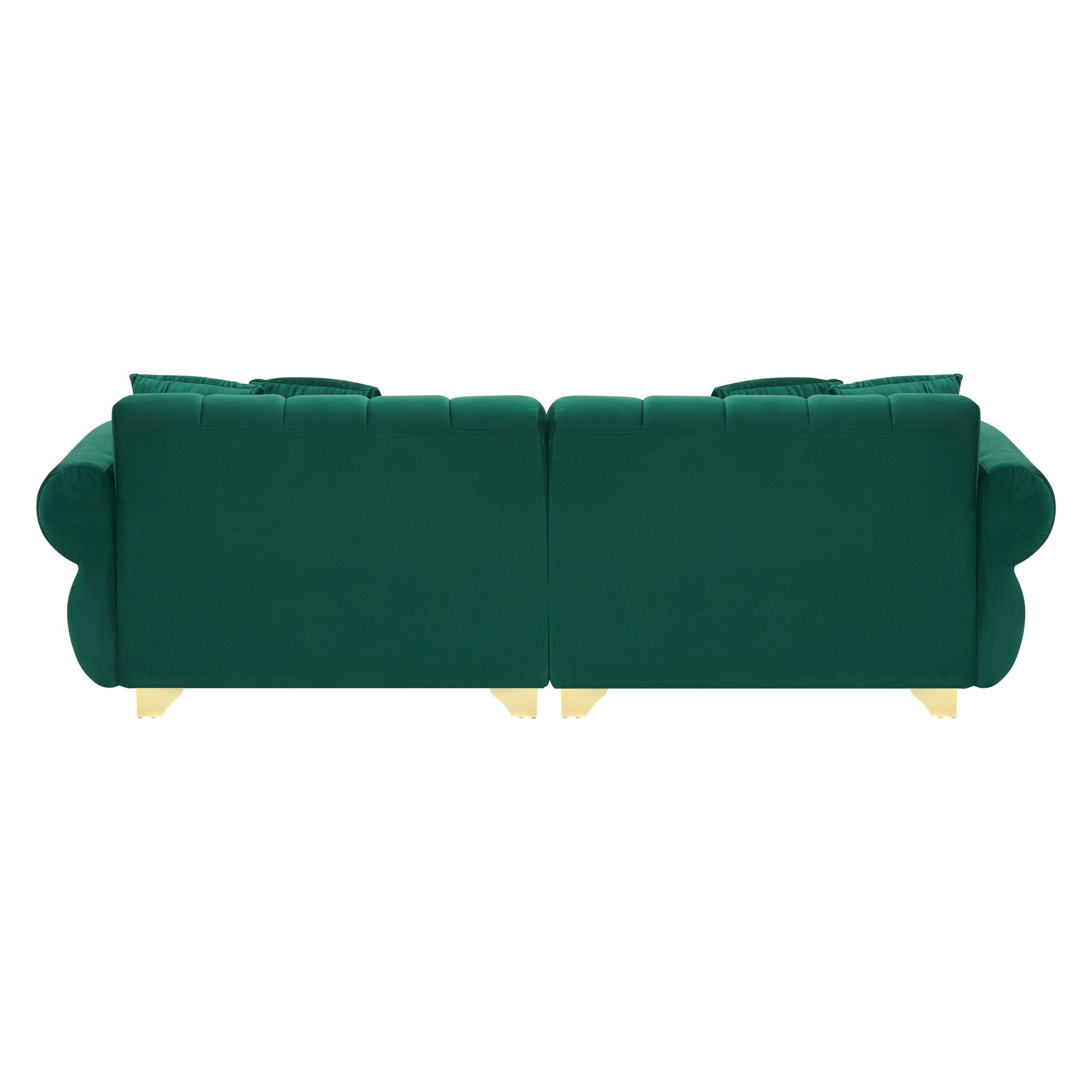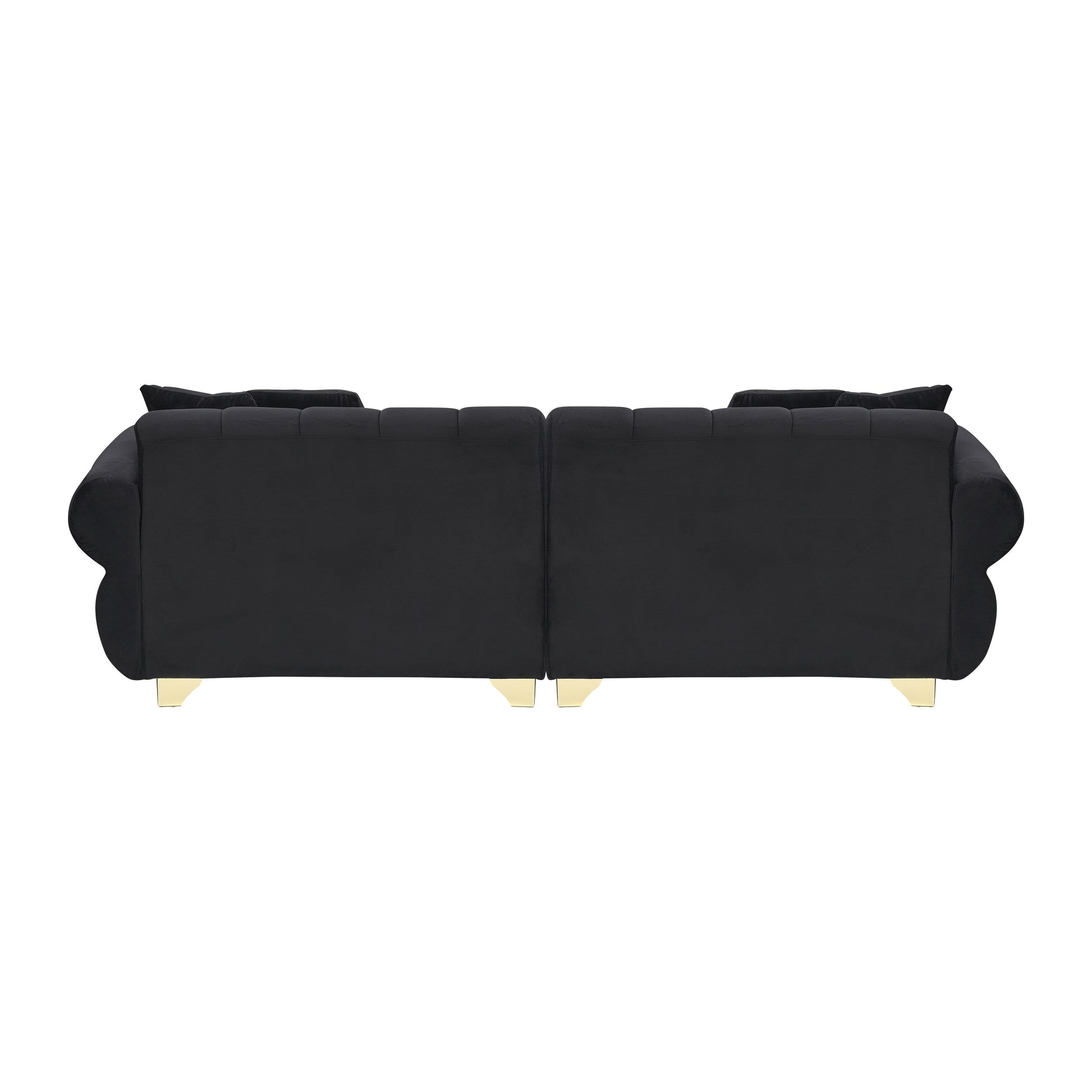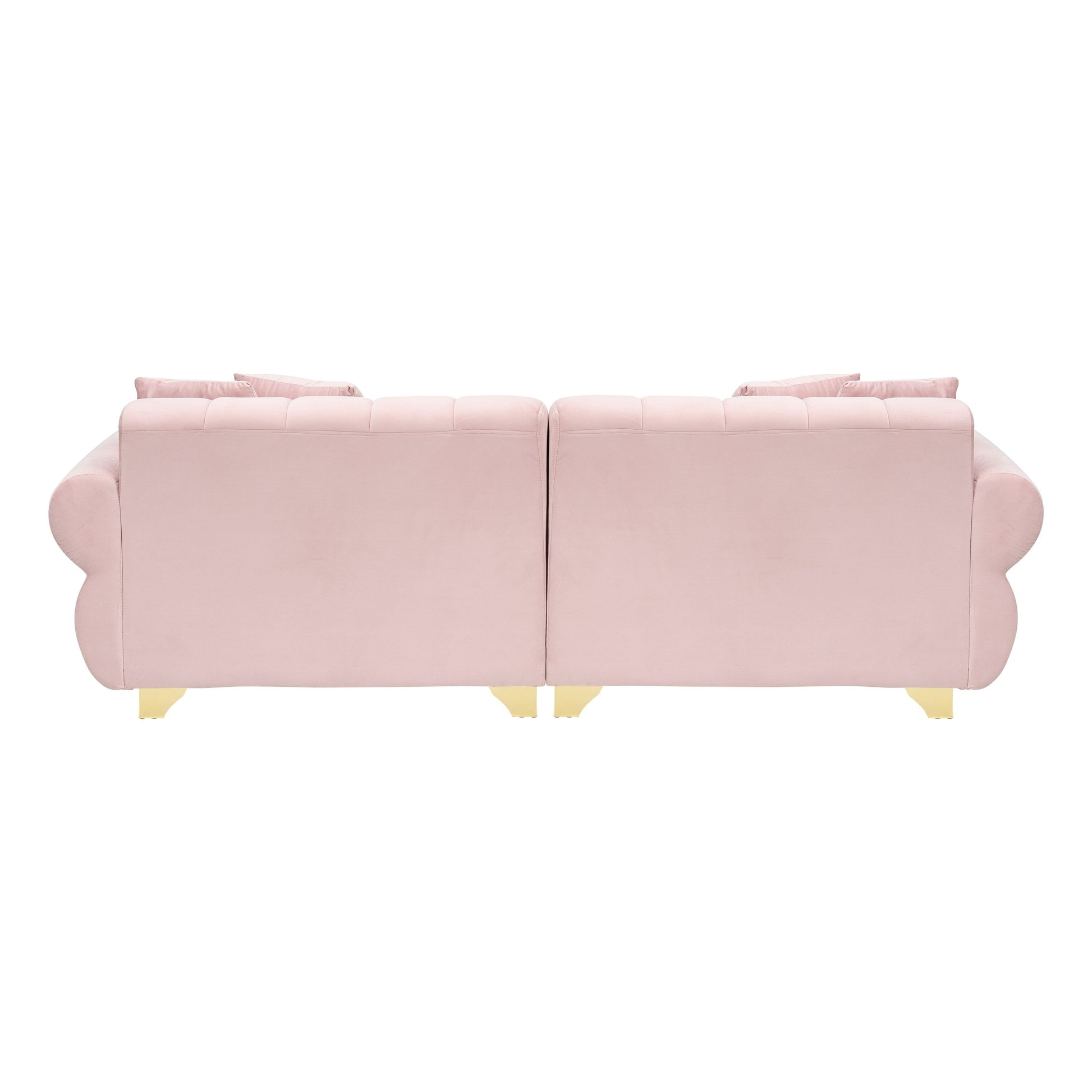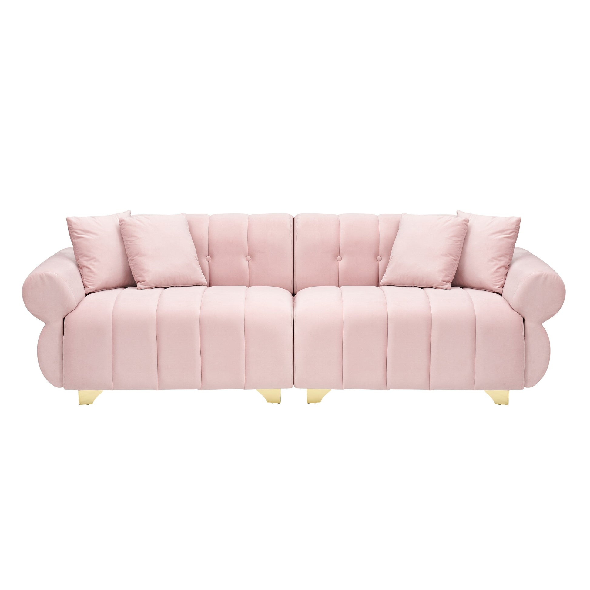 Velvet Sofas Lounge Couch with Round Armrests and Channel Tufting Back, Deep Seat Sofa with Metal Leg and 4 Throw Pillows