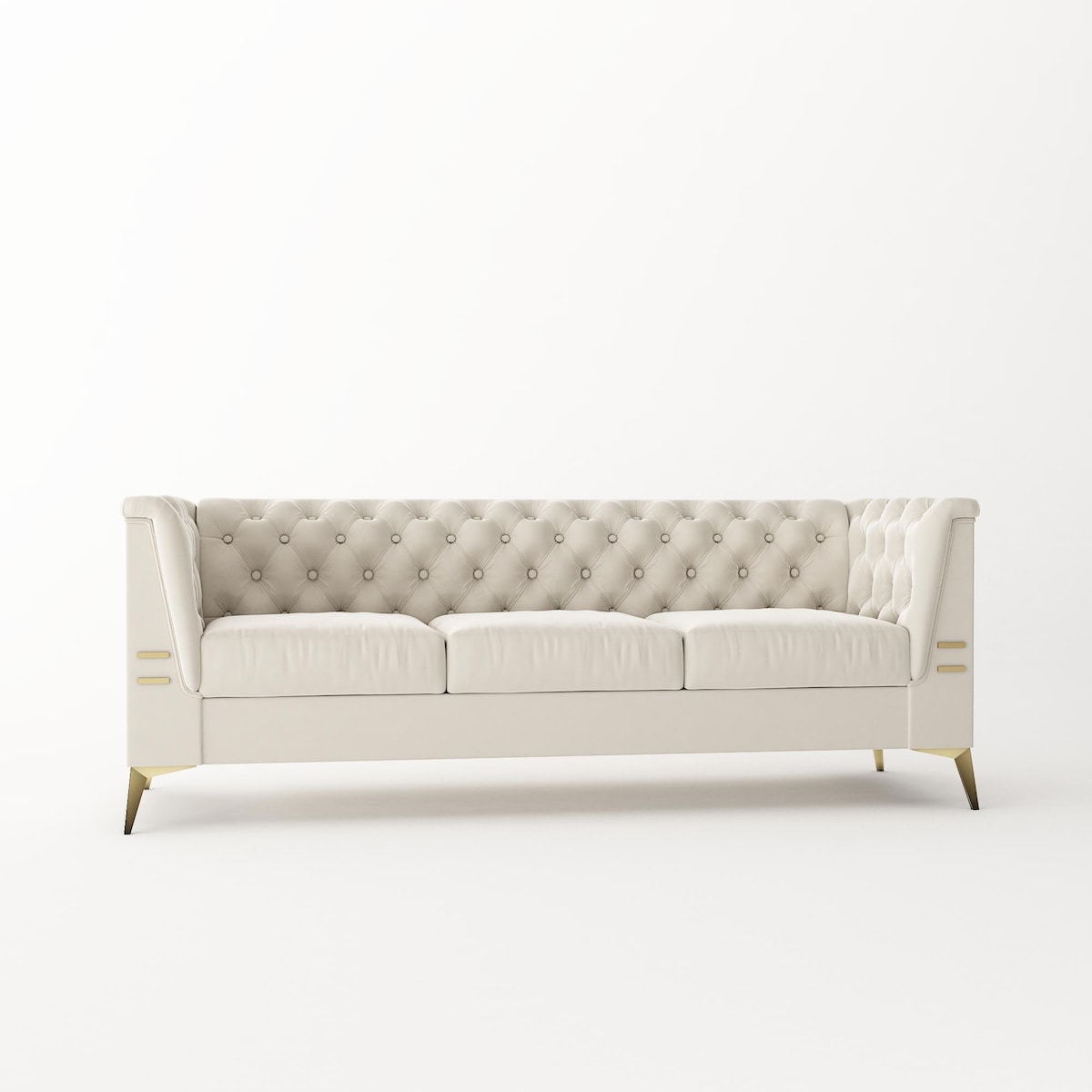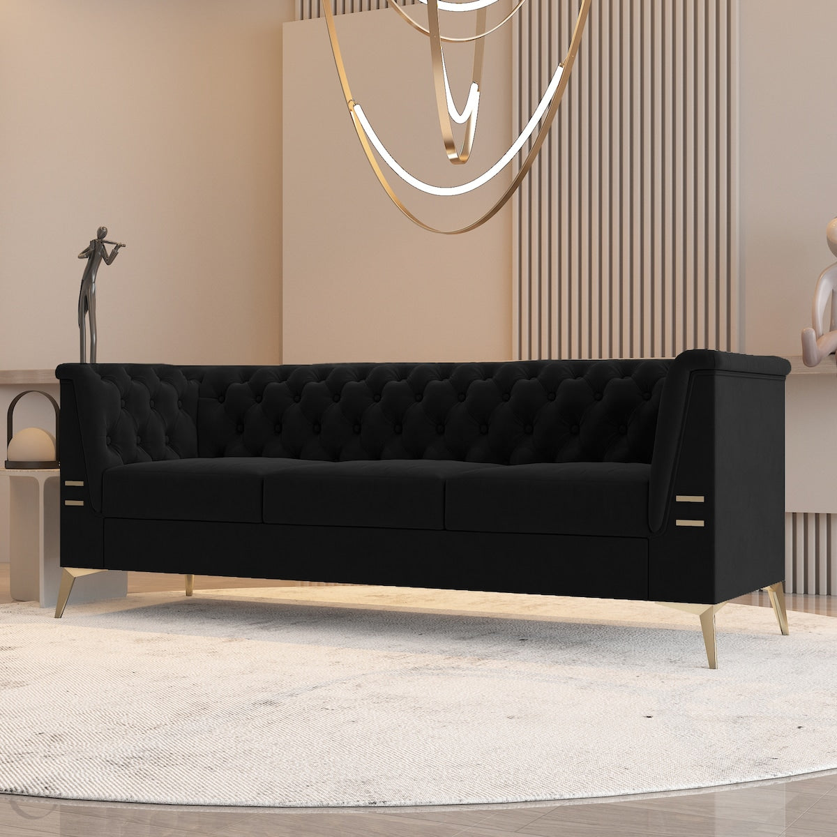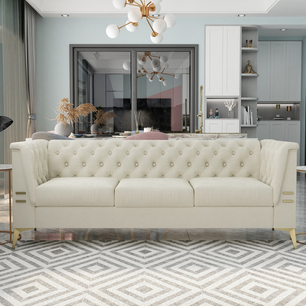 Velvet Upholstered 3-Seater Sofa Modern Living Room Couch Sofa with Deep Button Tufting Sofa and Metal Legs, Square Arms