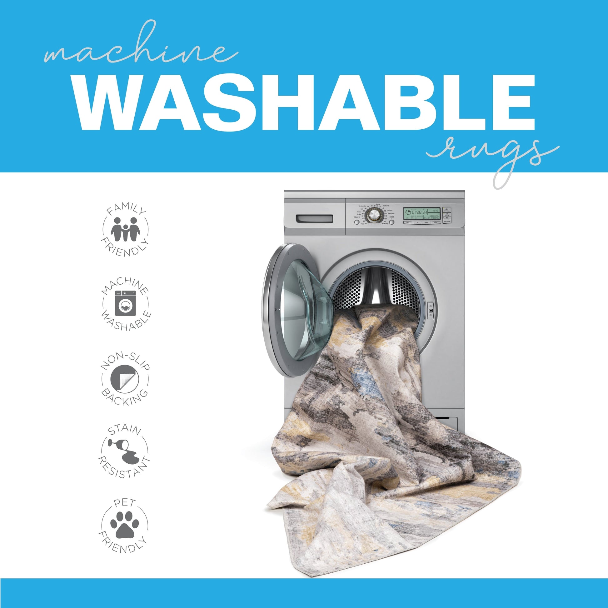 Tapis d'intérieur lavable abstrait gris/bleu de Vista Home Marissa