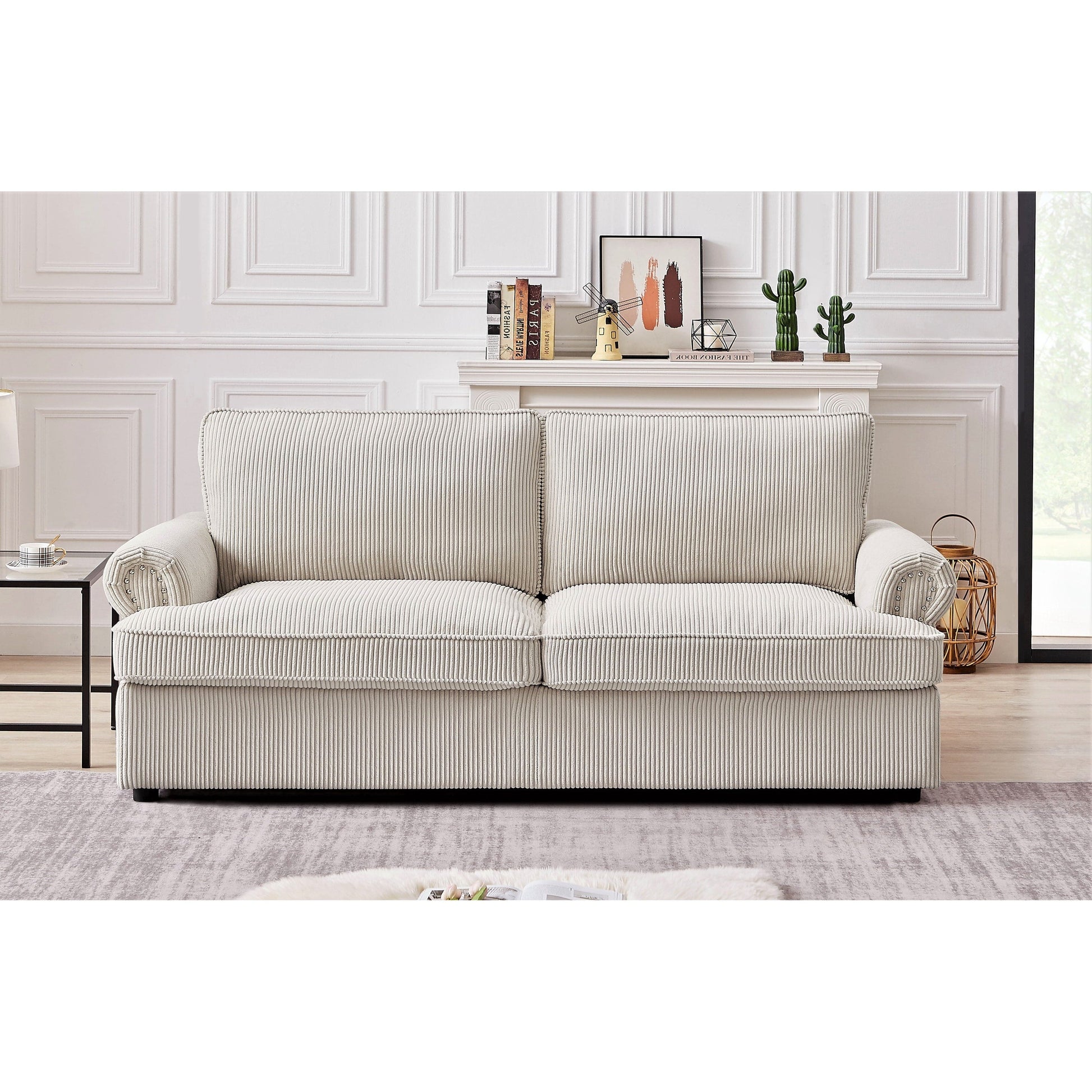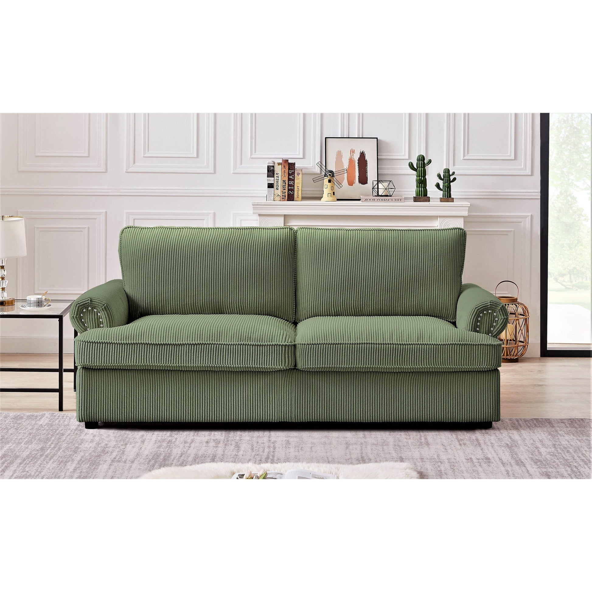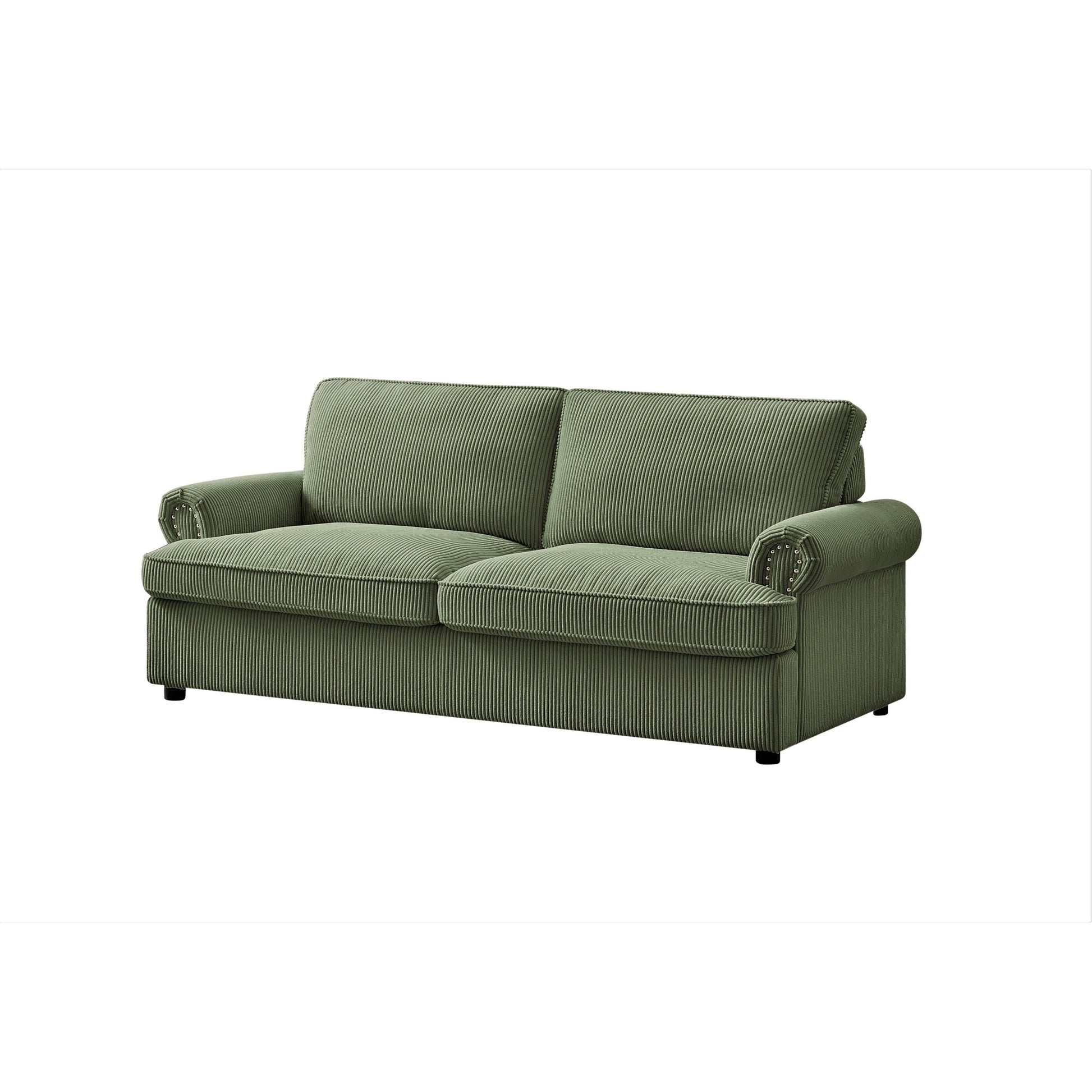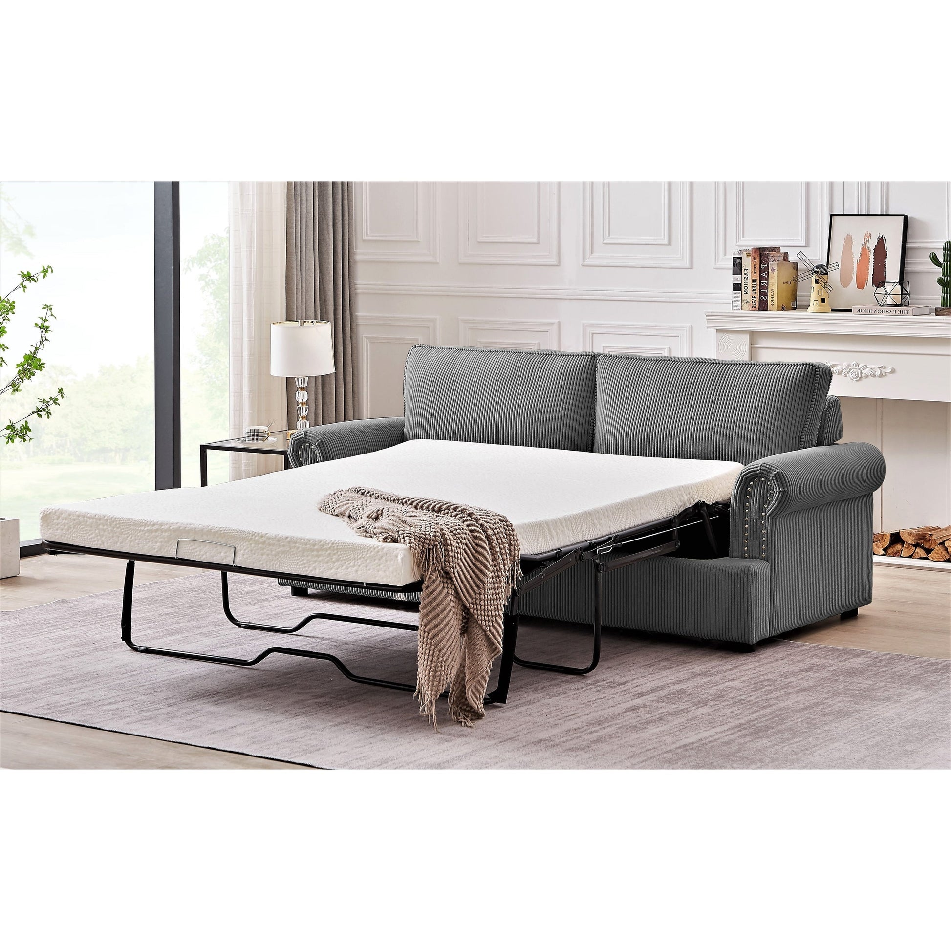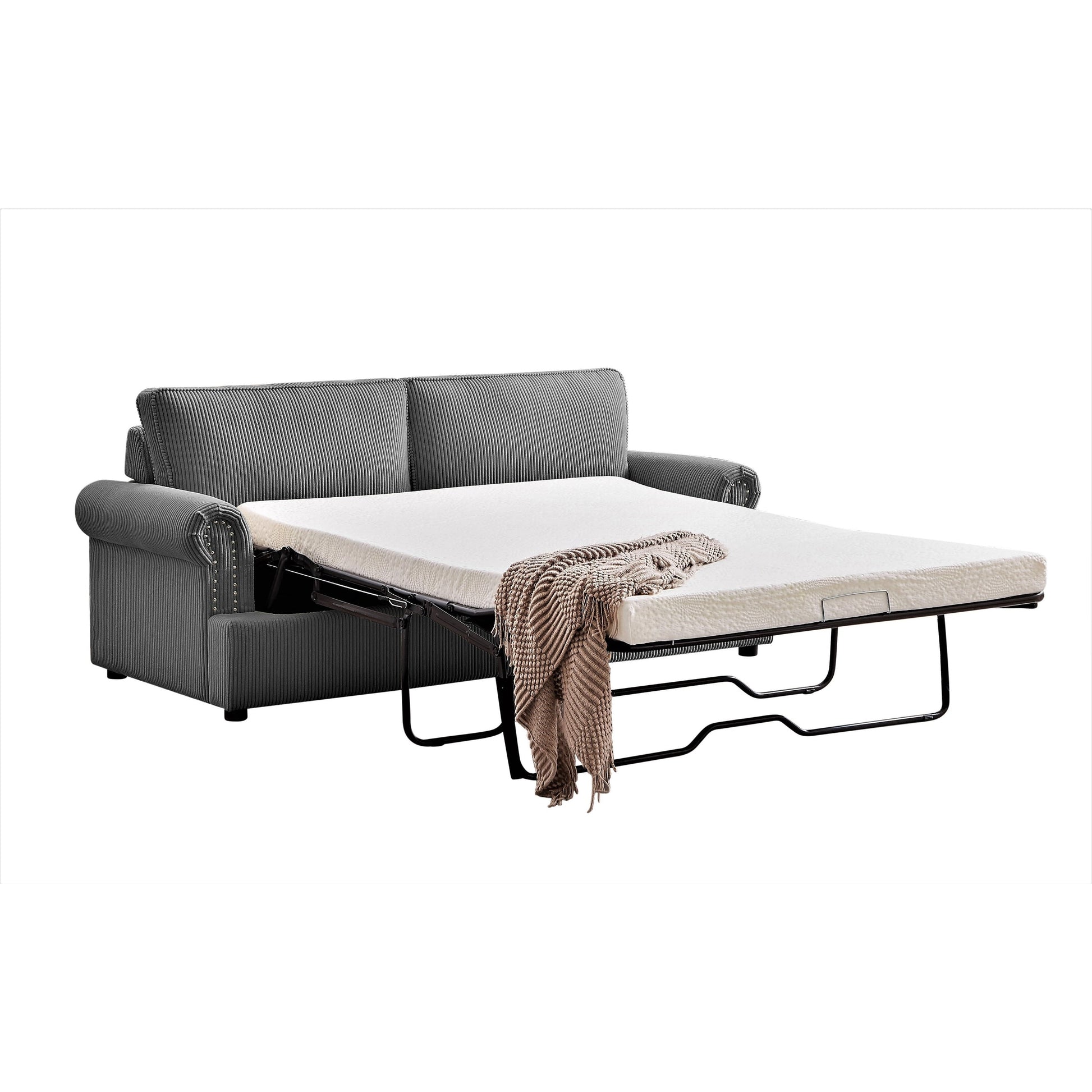 Anchor your living room seating group with this sleeper sofa, featuring a classic round arm silhouette and cushion backs. It extends to a queen-sized bed that's just right for overnight guests. This Sofa Bed its cushions are filled with foam, with mattress has a wooden frame and metal mechanism that makes it tough and durable, brings spare sleeping space and glam style to your living room. It is covered in Corduroy Fabric, which gives you the much needed comfort and rest. The mattress is in high density foam will serve you a relaxable resting. It is suitable for residential as well as commercial use. The sleeper sofa comes with a pull-out bed that includes an foam mattress. The mechanism is made from heavy gauge steel giving the bed a 500 pound weight limit. Quality seating construction in the seat cushion will promote comfort and support every time you sit in the furniture.