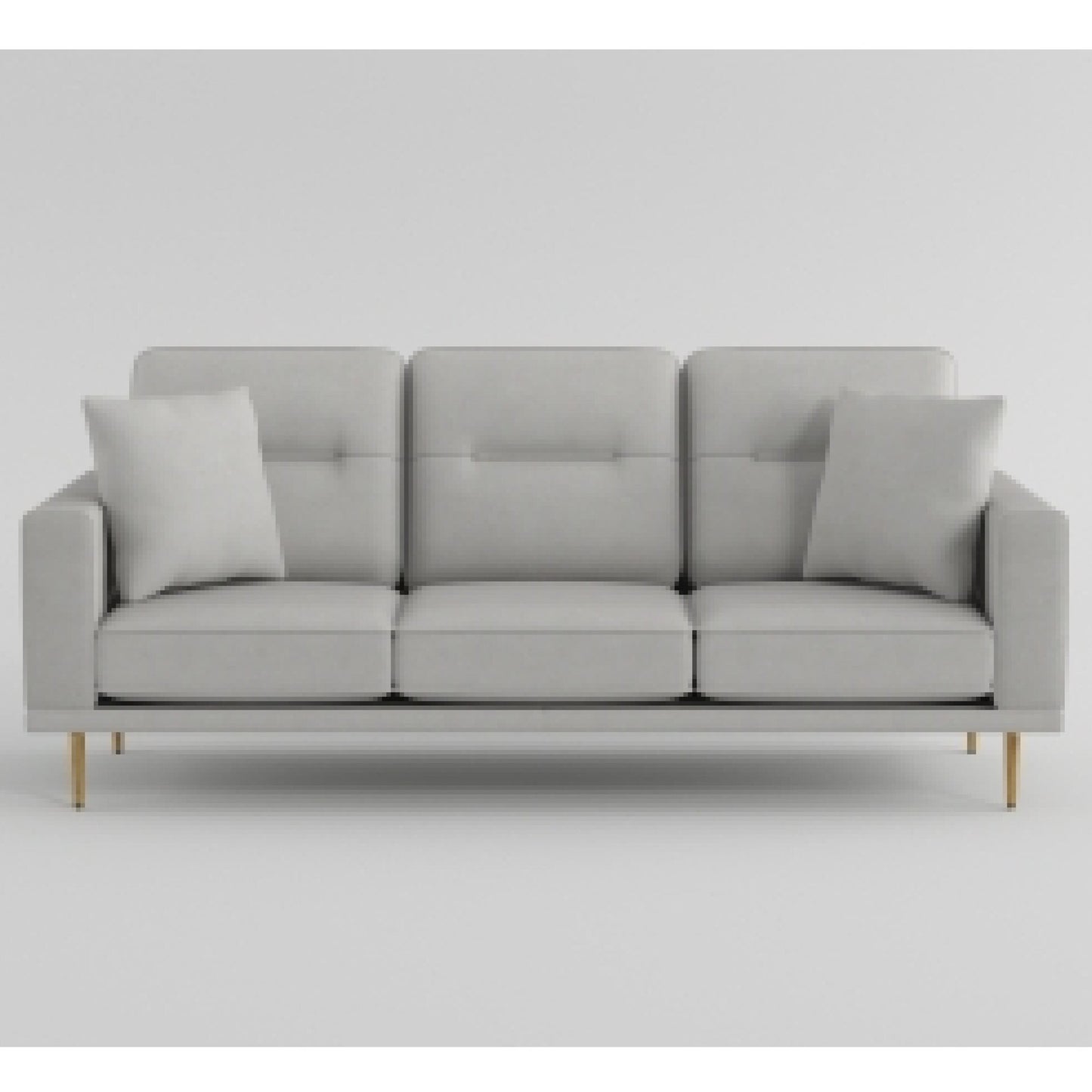 Voxo Sofa, Gray Velvet Padded Seat, Two Accent Pillows, 82 Inch