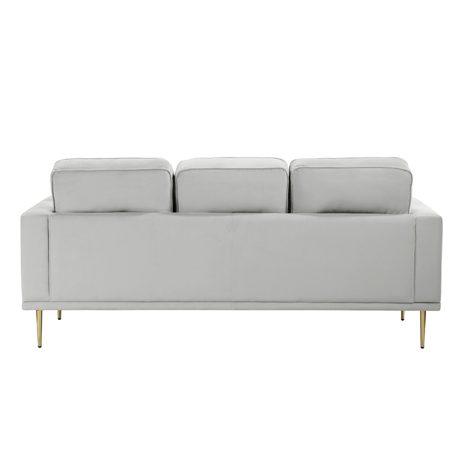 Bring elegance and bold character to your space with this striking sofa, designed to captivate and comfort. Constructed with a solid wood and plywood frame, it features luxurious gray velvet upholstery and sleek gold metal legs for a refined finish. Reversible cushions with removable covers ensure long-lasting function. Explore our Voxo collection for more options.