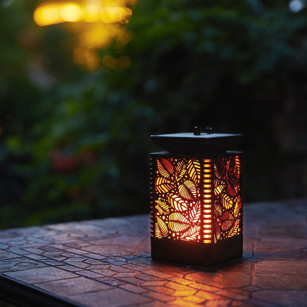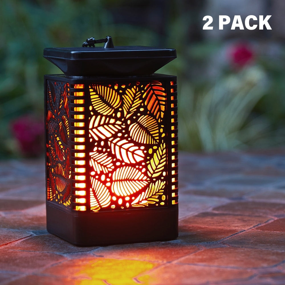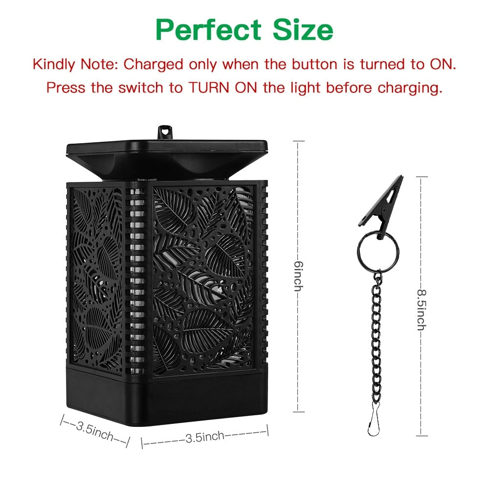 Fabriquée en plastique ABS de haute qualité, elle est durable et peut être utilisée à l'intérieur comme à l'extérieur toute l'année. Elle vous permet de profiter du magnifique jeu de flammes vacillantes. Sa forme de feuille sur le côté lui confère une esthétique unique. Vous pouvez la poser sur une table ou la suspendre à un crochet. Son design spécial de flammes dansantes, imitant la vraie flamme, rend cette lanterne encore plus attrayante. Observer les flammes dansantes, comme si elles étaient au cœur d'un feu, crée une ambiance fantastique et attrayante. Nos lampes solaires suspendues sont idéales pour le jardin, la terrasse, la cour, la pelouse, une table, un mariage, Noël, une fête d'Halloween ou un camping, créant une ambiance idéale autour d'un feu de camp.