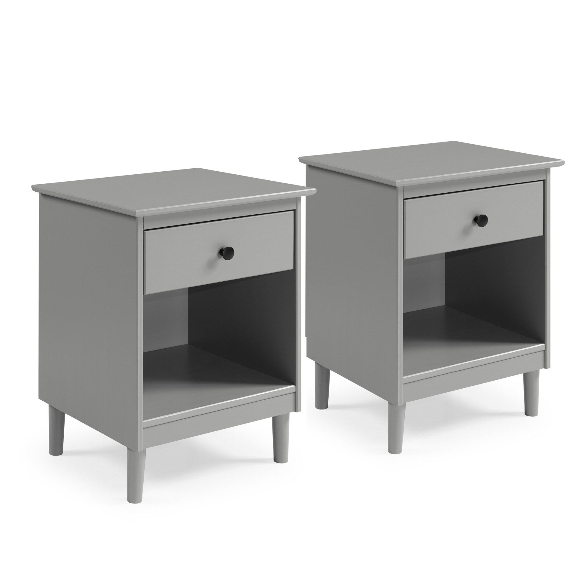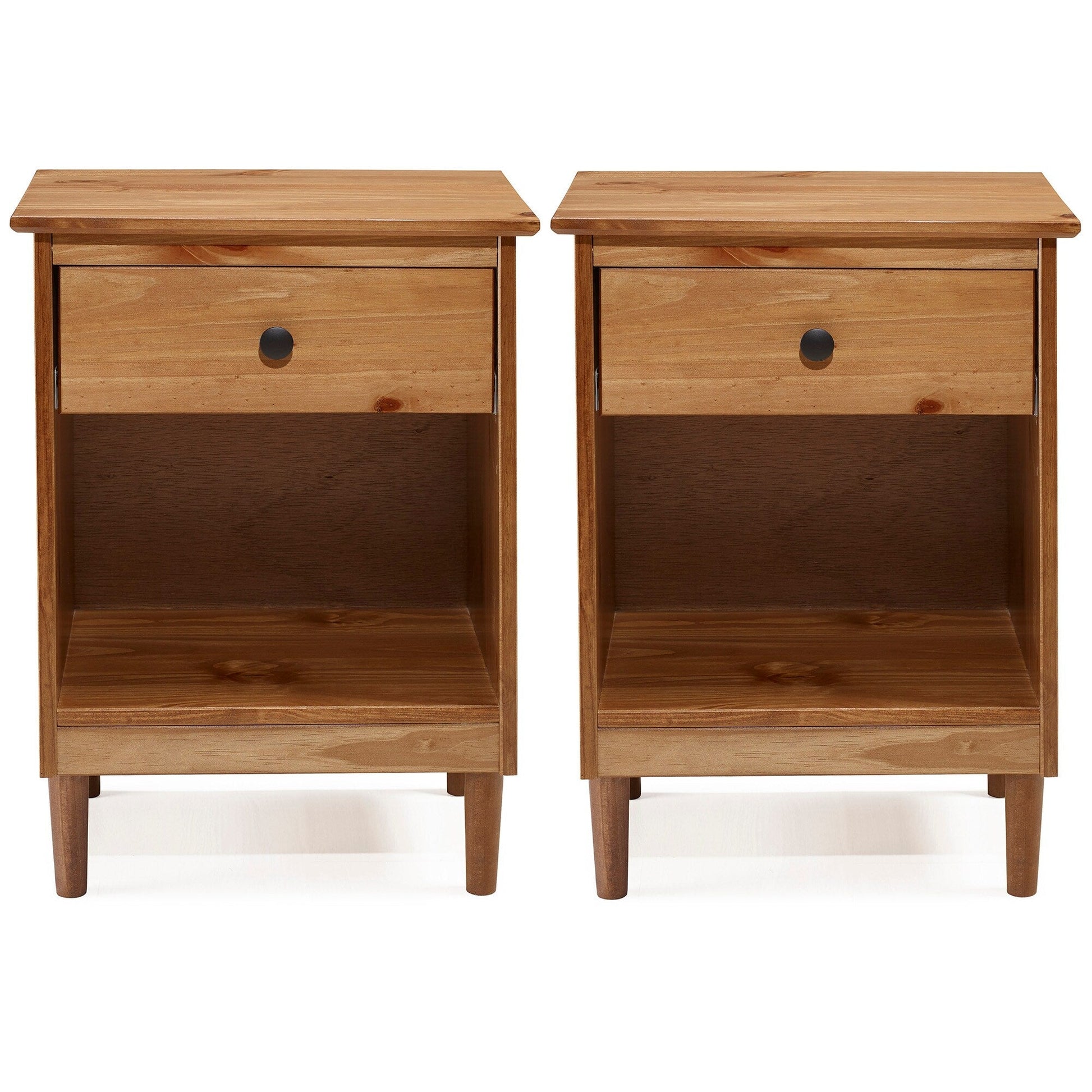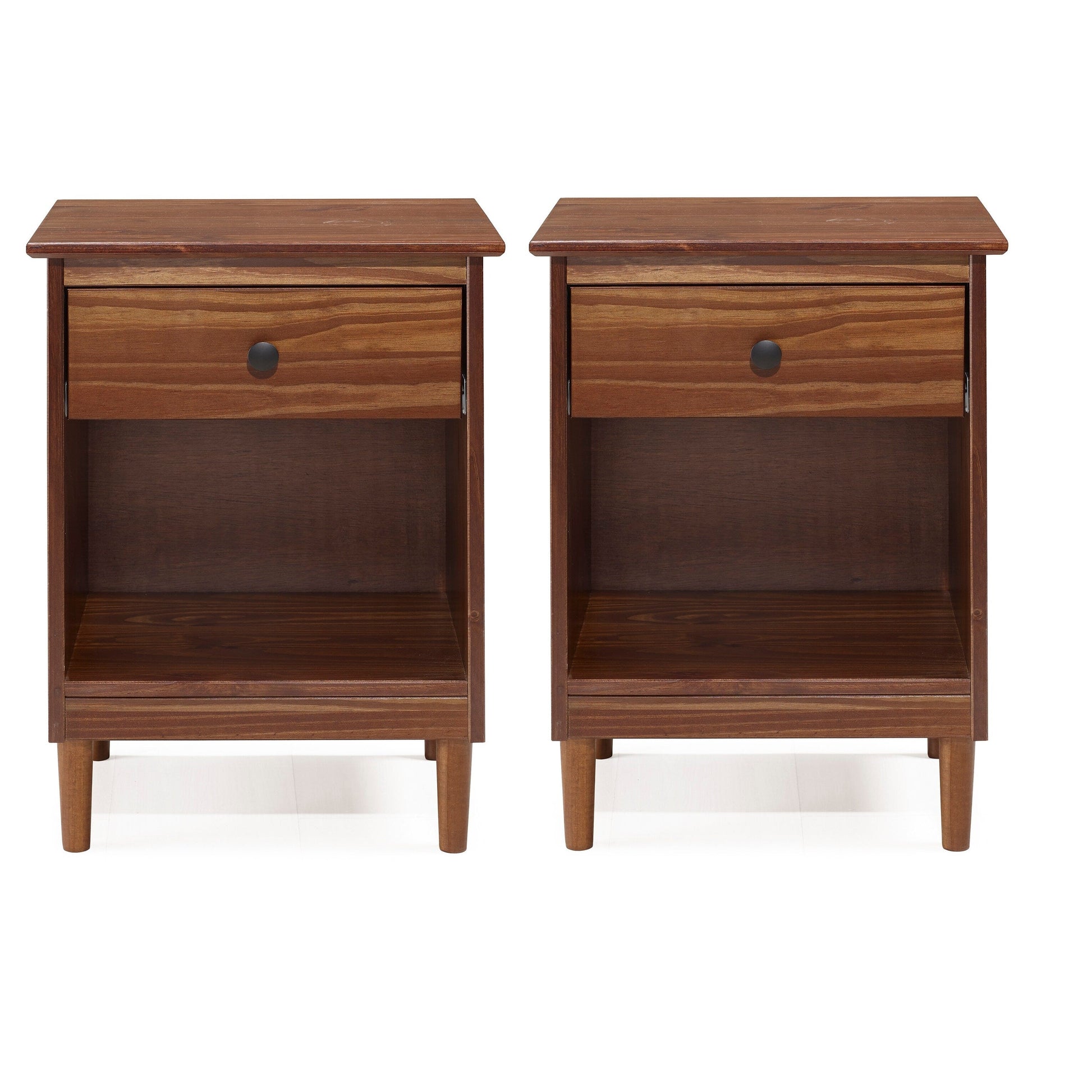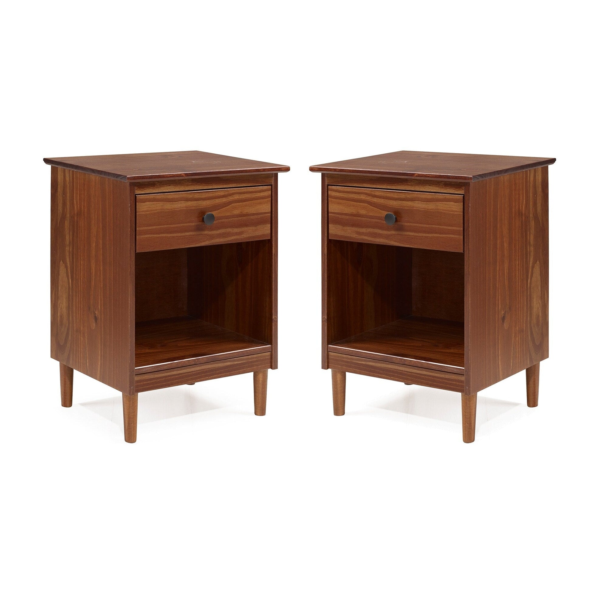 Cet ensemble de tables de chevet à un tiroir affiche un design classique et épuré. Sa structure carrée et ses pieds fuselés d'inspiration milieu du siècle sont fabriqués en pin massif et MDF issus de sources durables, pour une fiabilité à toute épreuve. Doté d'un tiroir spacieux pour dissimuler vos essentiels et d'une étagère inférieure ouverte pour vos livres ou magazines, ce meuble offre de multiples solutions de rangement.