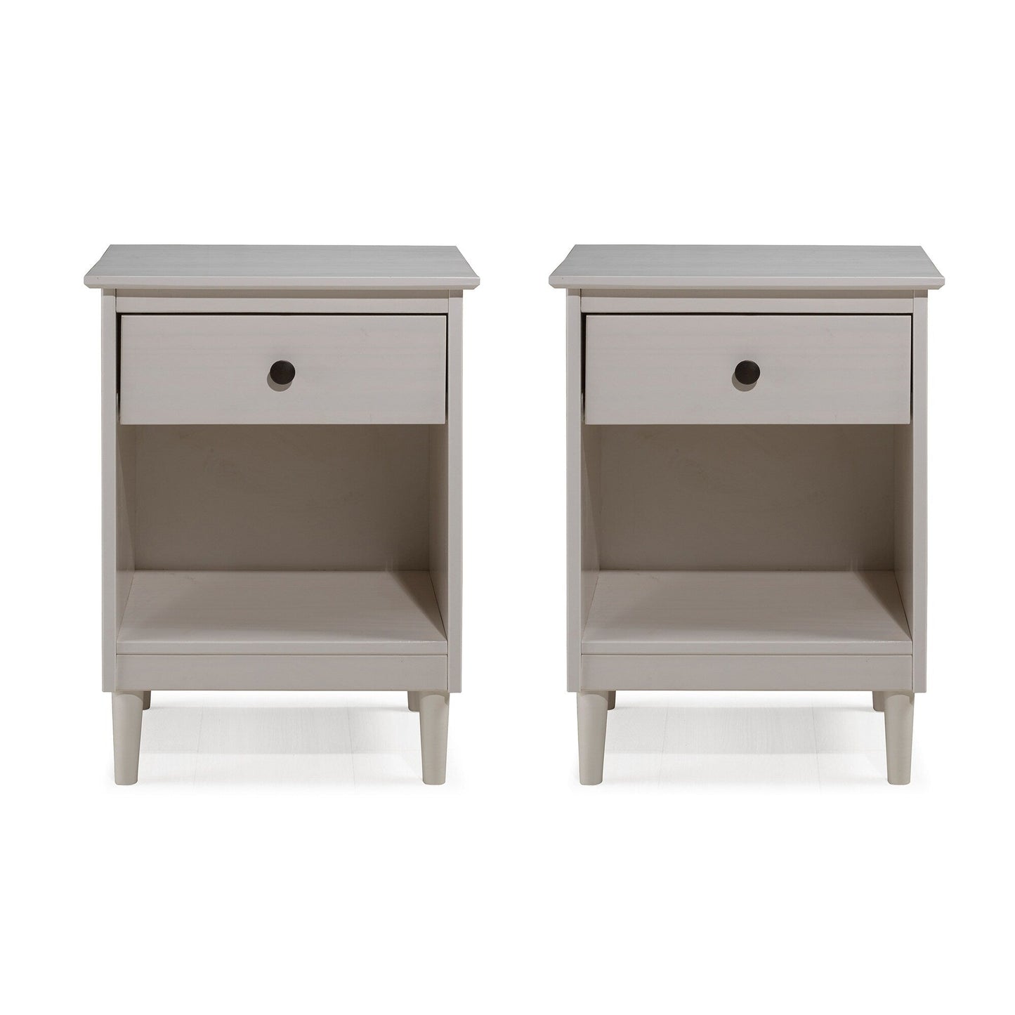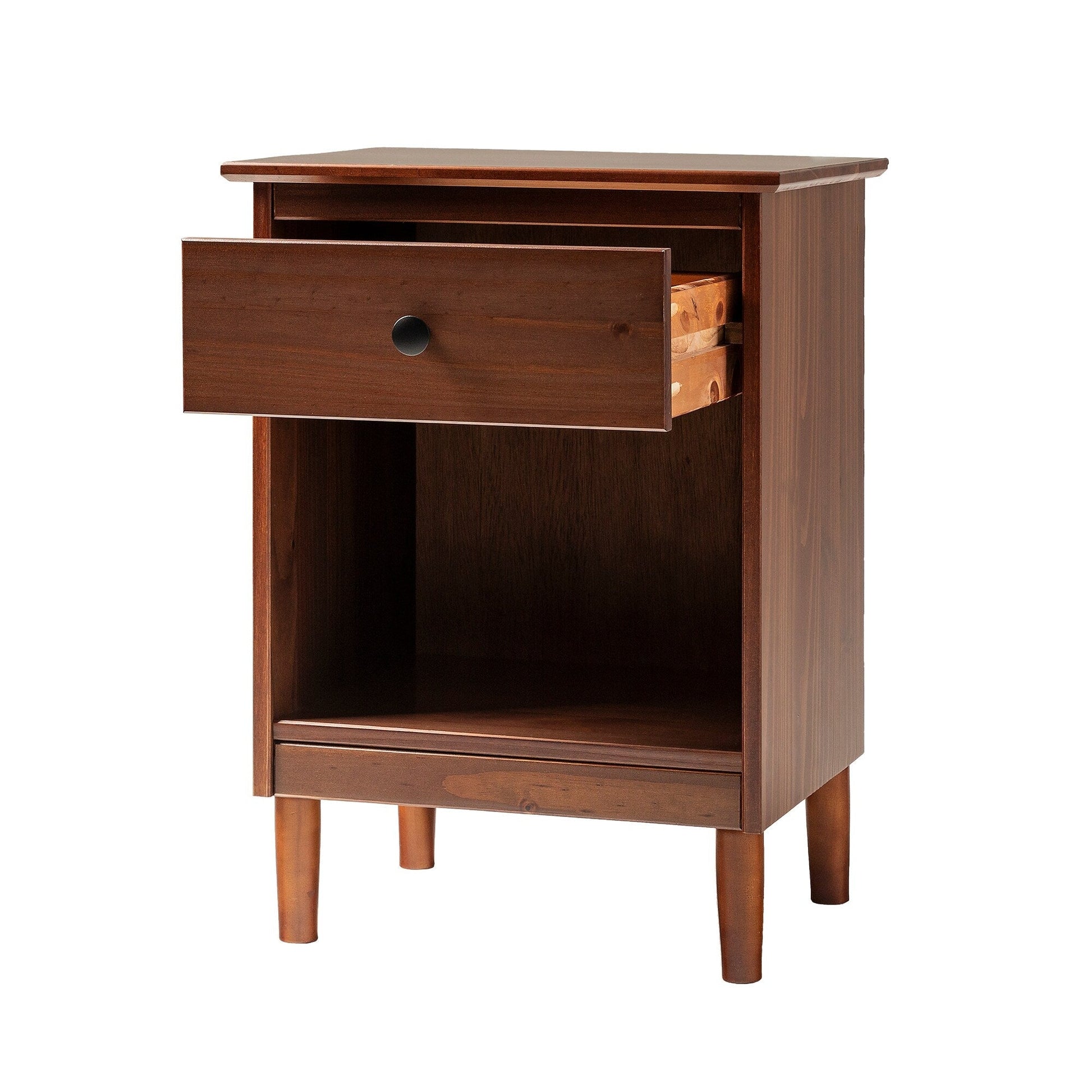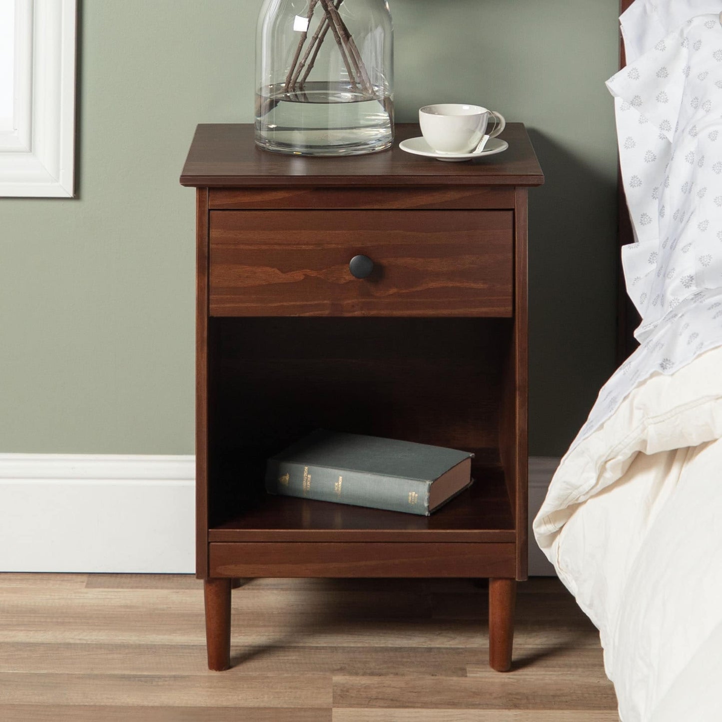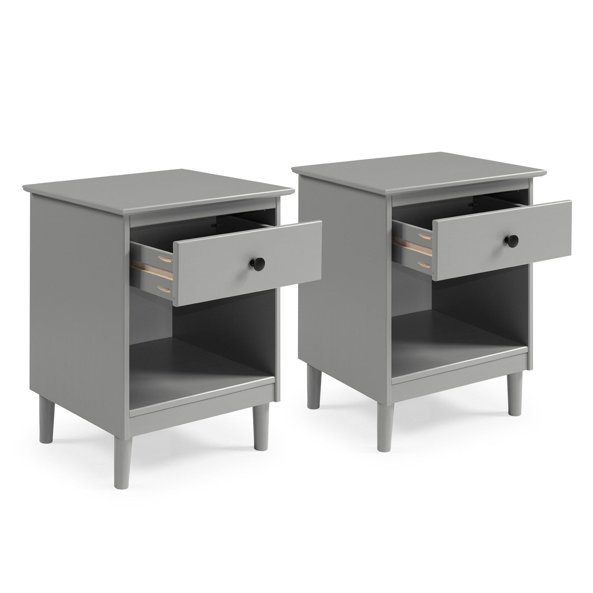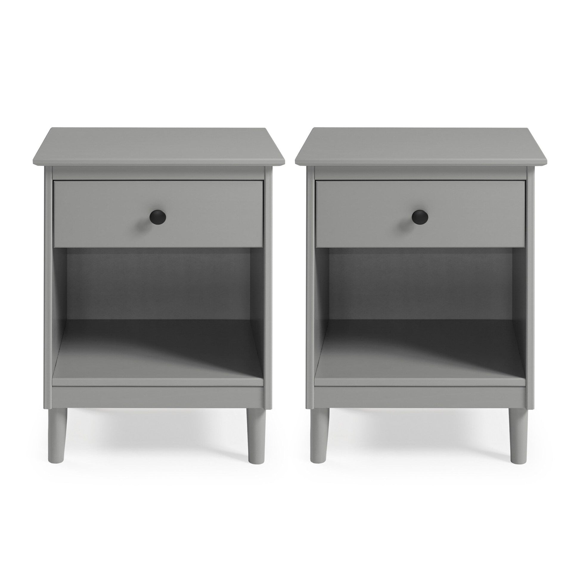 Cet ensemble de tables de chevet à un tiroir affiche un design classique et épuré. Sa structure carrée et ses pieds fuselés d'inspiration milieu du siècle sont fabriqués en pin massif et MDF issus de sources durables, pour une fiabilité à toute épreuve. Doté d'un tiroir spacieux pour dissimuler vos essentiels et d'une étagère inférieure ouverte pour vos livres ou magazines, ce meuble offre de multiples solutions de rangement.
