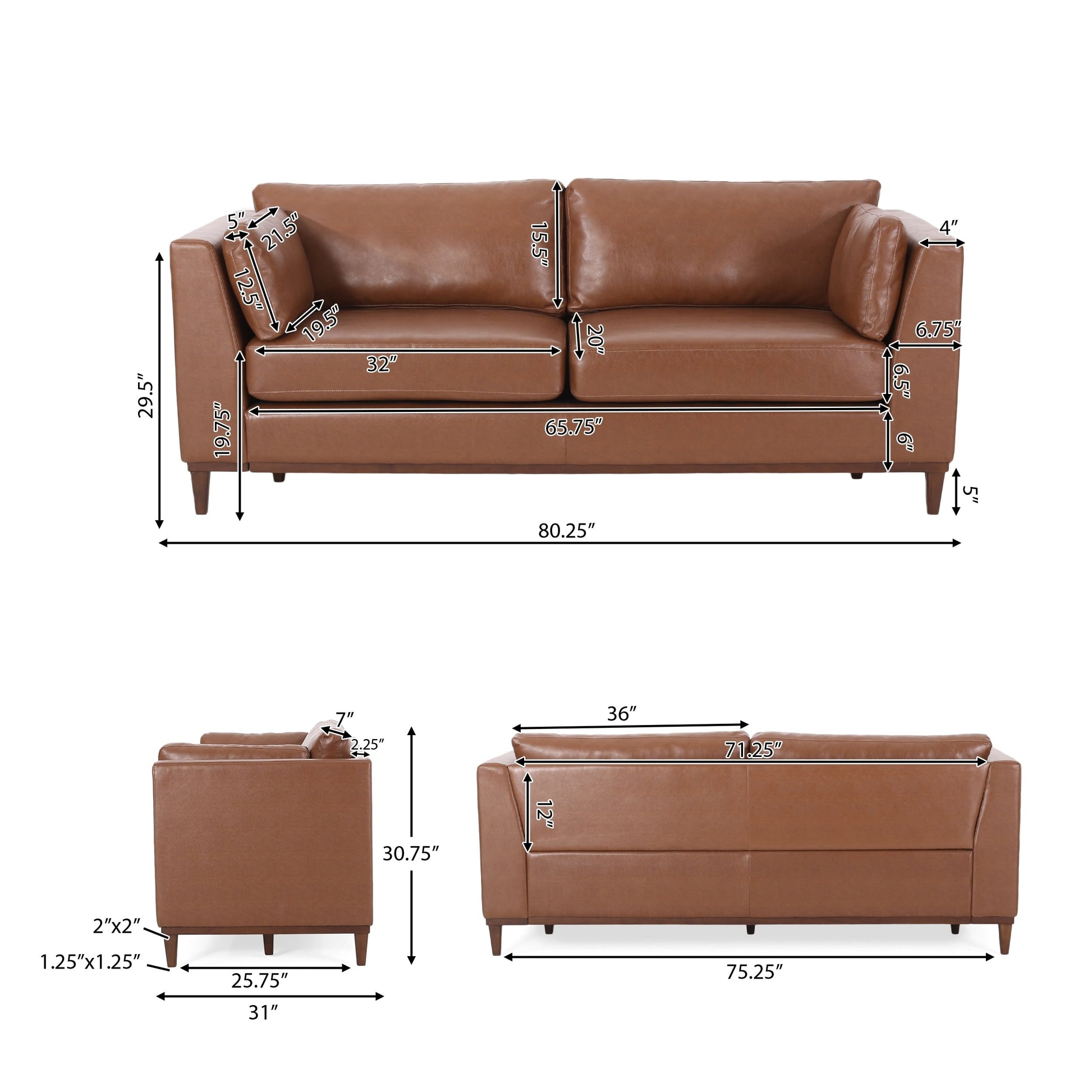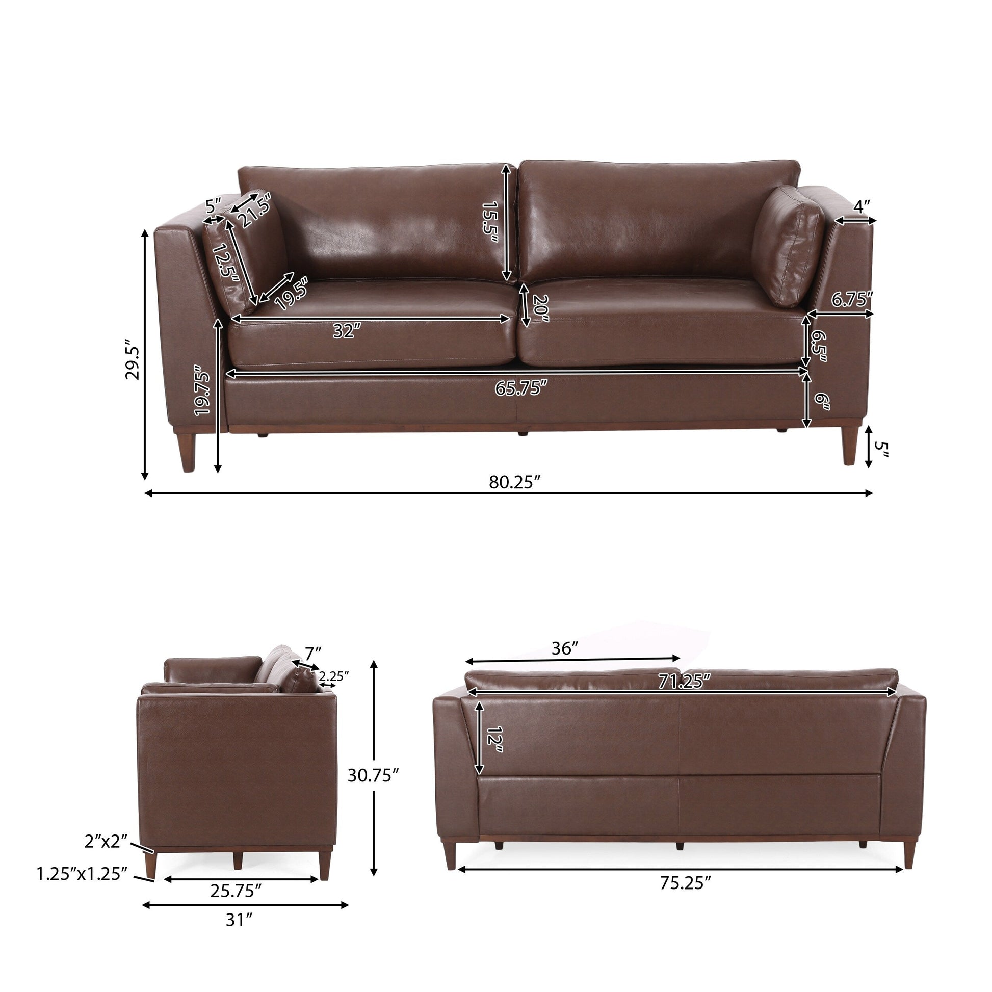 - Dimensions du siège : 20,00 pouces de profondeur x 65,75 pouces de largeur x 19,75 pouces de hauteur