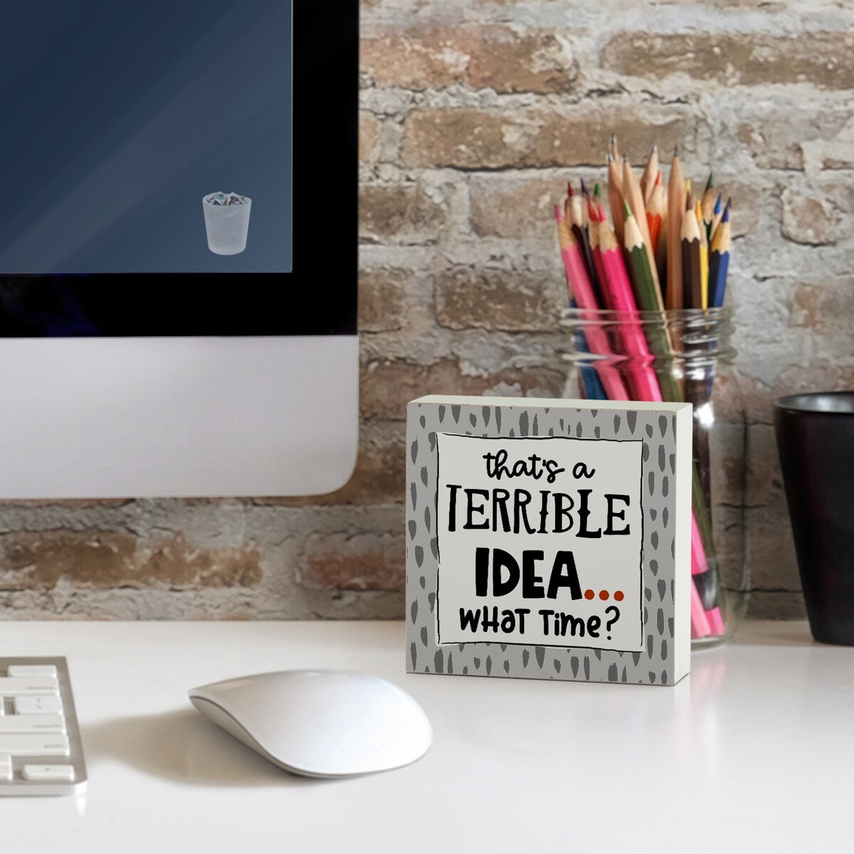 Panneau décoratif en bois avec message « Idée terrible », carré de 9,5 cm, fabriqué aux États-Unis - Multi-49