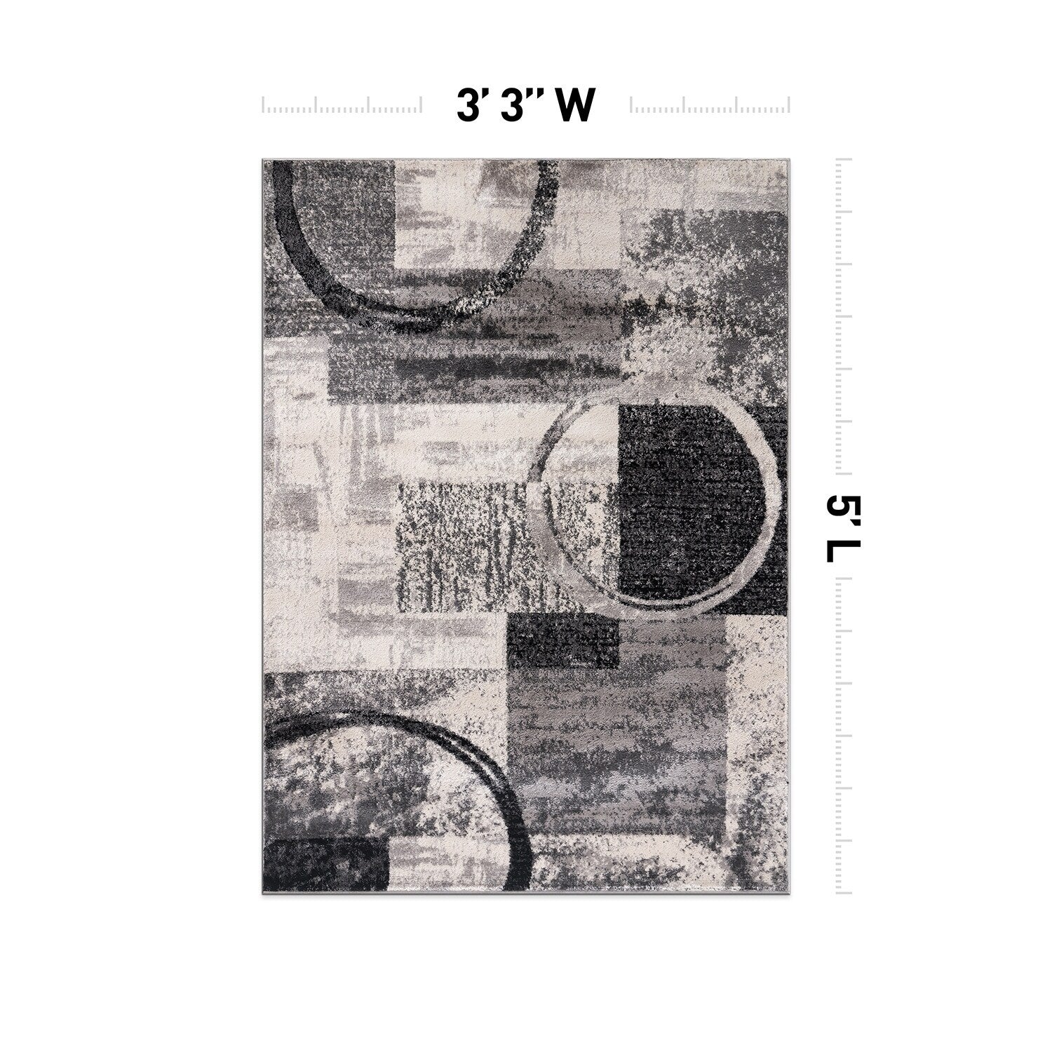 Tapis circulaire abstrait en polypropylène fabriqué à la machine, de la World Rug Gallery