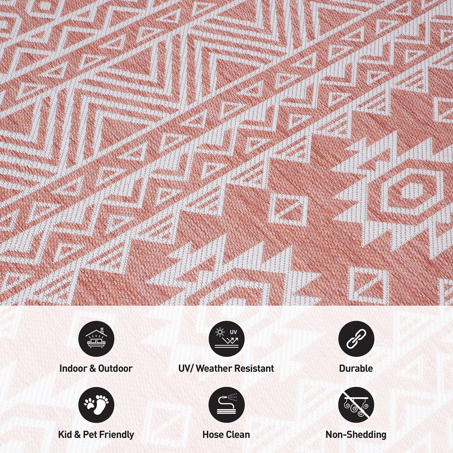 - Tapis d'intérieur/extérieur, conçu pour résister à l'usure quotidienne, ce tapis est adapté aux enfants et aux animaux et parfait pour les zones à fort passage de votre maison comme le jardin, le patio, la terrasse, la véranda, la véranda, le salon, la salle à manger, la chambre, l'entrée, la chambre d'enfant, la salle de jeux, la chambre universitaire, le bureau ou le bureau à domicile. Tissage plat résistant aux intempéries. Le sous-tapis est recommandé pour un usage intérieur uniquement.