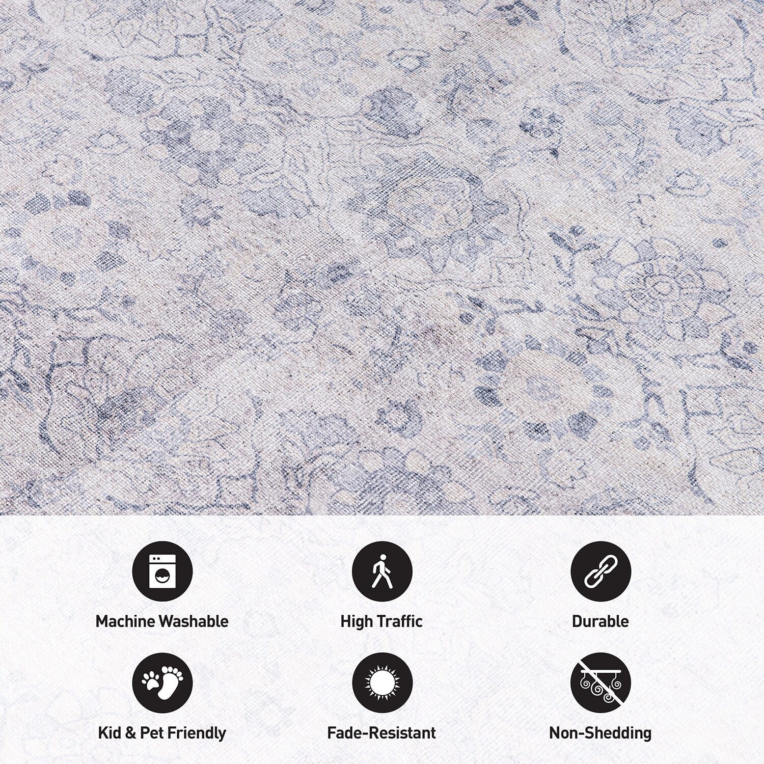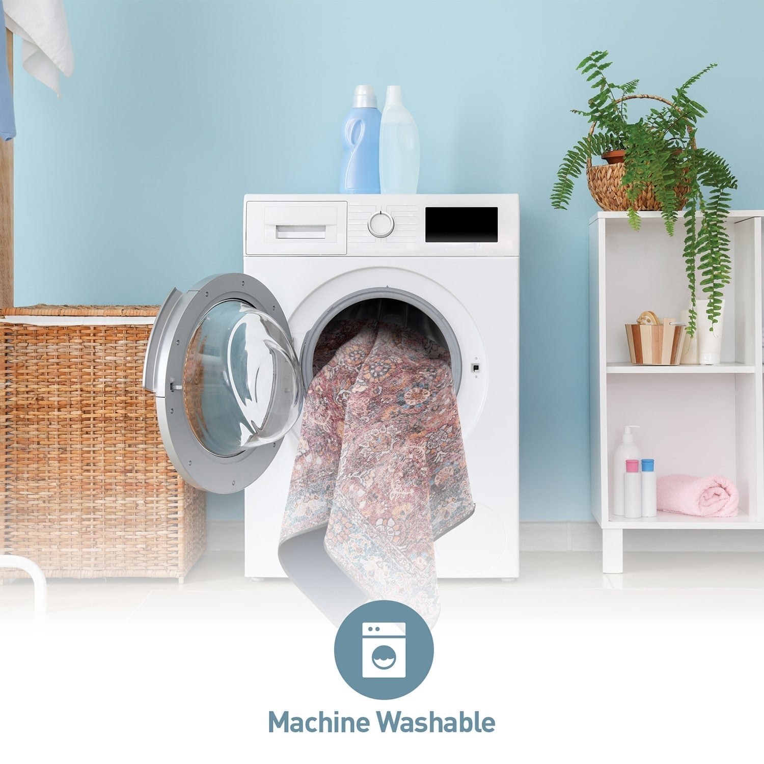 Tapis de transition World Rug Gallery, style vintage, antidérapant, lavable en machine, avec bordures