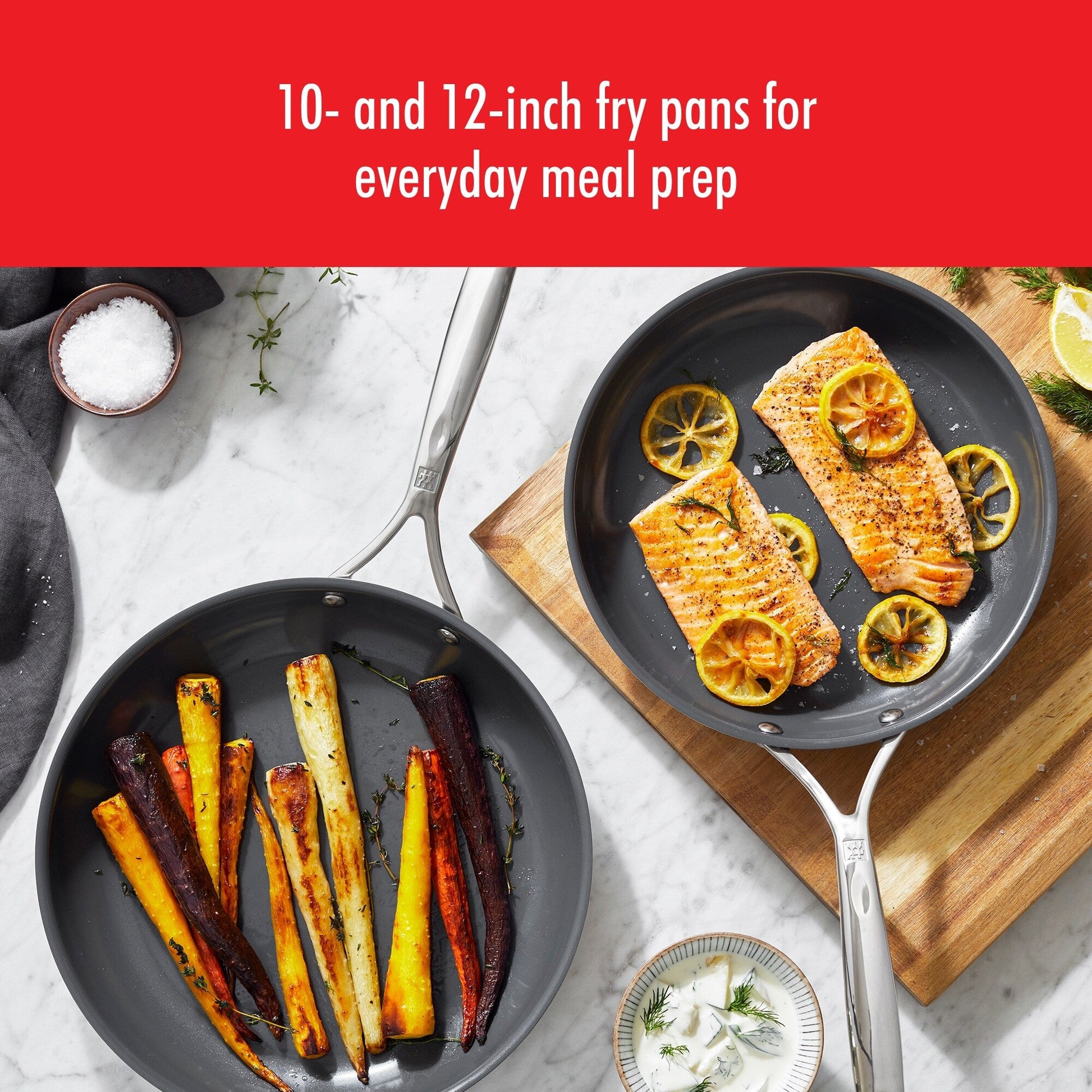 - L'ensemble comprend une poêle à frire de 10 pouces et une poêle à frire de 12 pouces