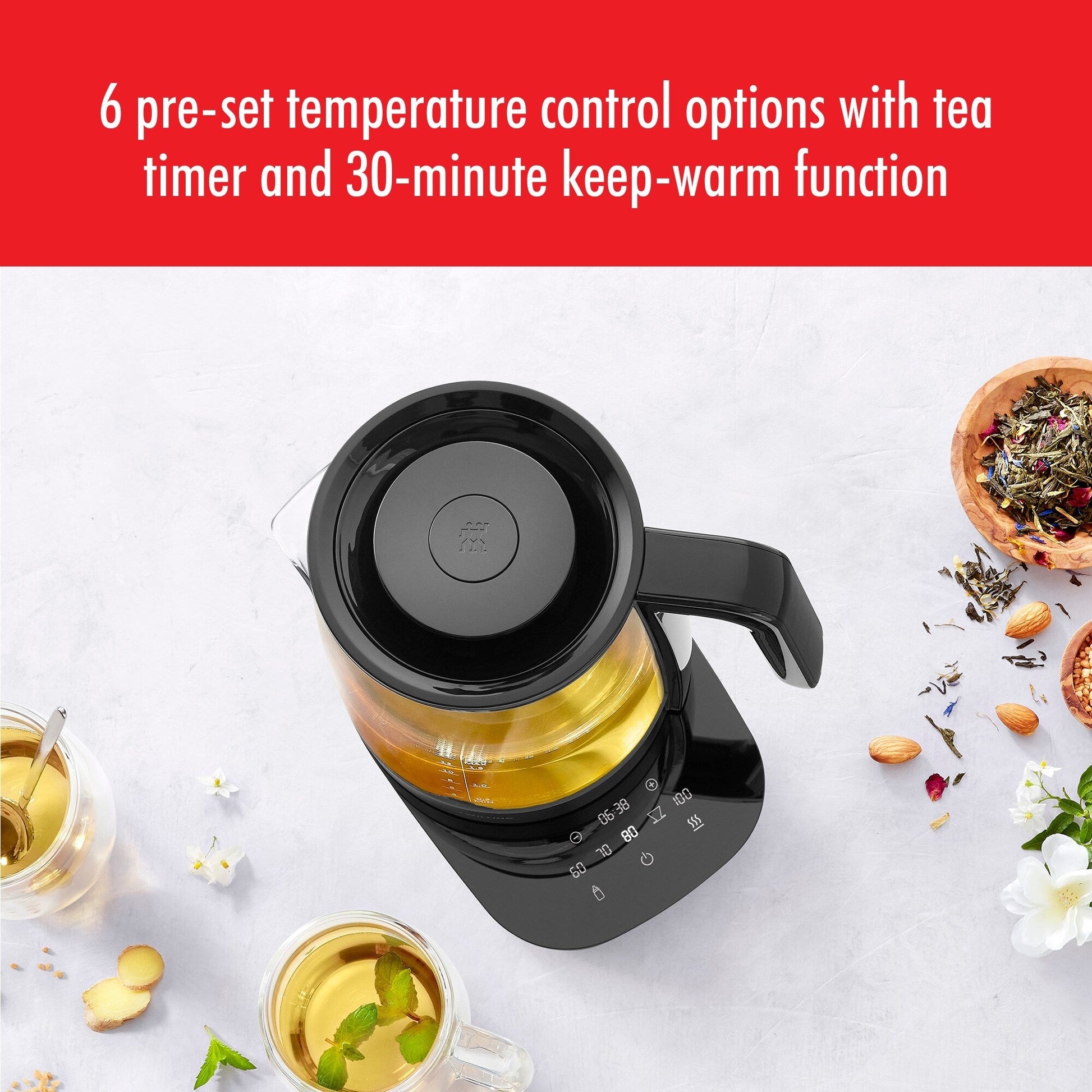 Cette élégante bouilloire en verre borosilicaté durable est dotée d'une graduation double face facile à lire et offre une généreuse capacité maximale de 7 tasses. L'infuseur en acier inoxydable peut être inséré pour préparer votre thé préféré directement dans la bouilloire. Elle est également dotée de 4 réglages de température, d'une minuterie de 0 à 10 minutes et d'une fonction de maintien au chaud de 30 minutes.